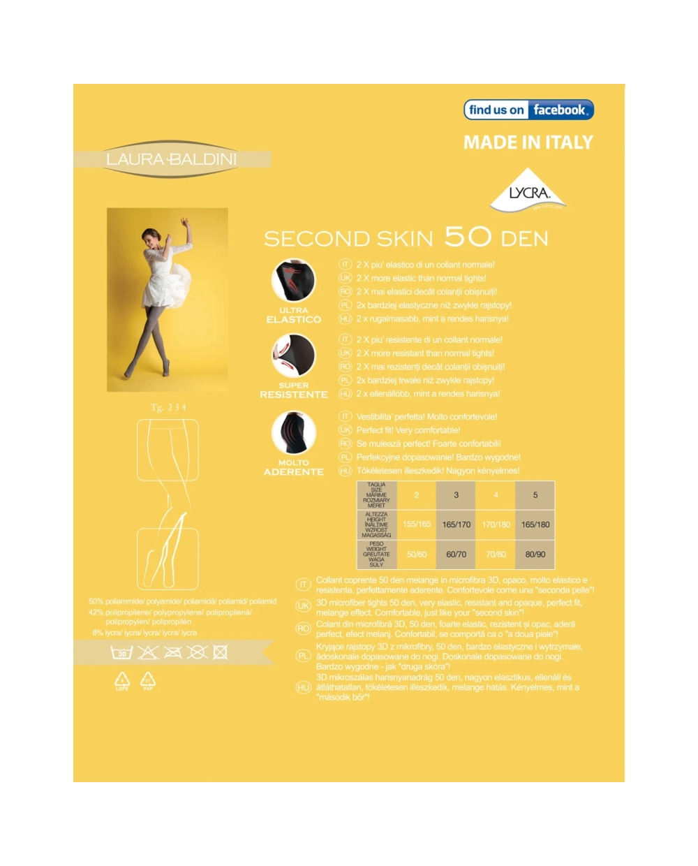 Colant din microfibra 3D, 50 den, foarte elastic, rezistent si opac, adera perfect. Confortabil, se comporta ca o “a doua piele”.