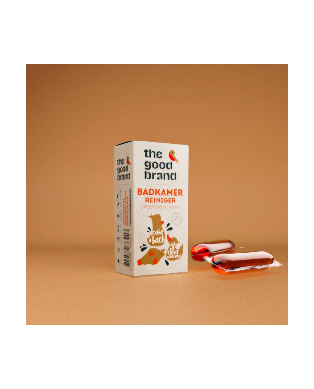 Curăță-ți baia într-un mod responsabil și eficient cu The Good Brand. Setul conține 2 capsule solubile în apă, fiecare suficientă pentru a prepara 500 ml de soluție de curățare pentru baie.