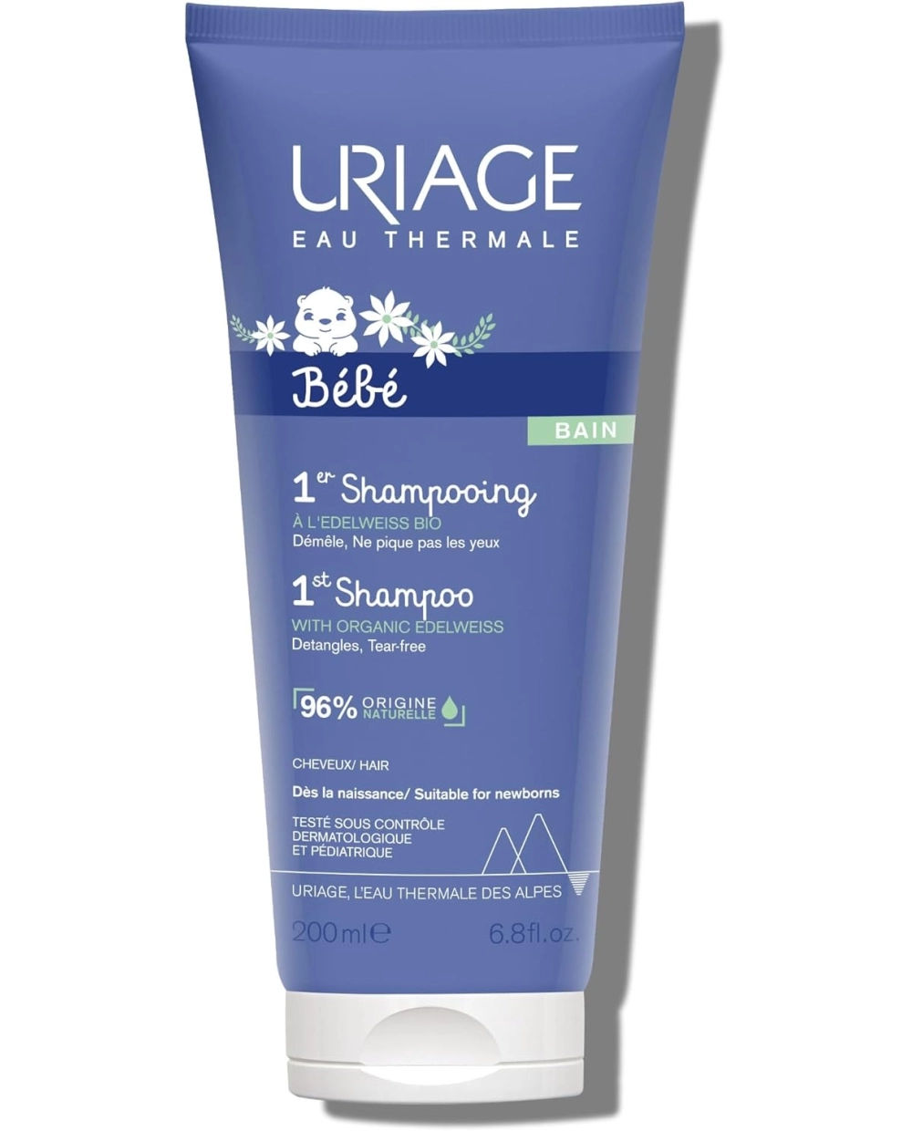 Șamponul Uriage 1er Bébé 200ml este un șampon fără săpun, special formulat pentru cei mici, încă de la naștere. Această bază de curățare foarte delicată, cu complex natural (Apă Termală Uriage + Edelweiss Bio), respectă echilibrul scalpului, curăță delicat și descurcă părul celor mici. Formula sa biodegradabilă este ușor parfumată și nu irită ochii. 96% din ingrediente sunt de origine naturală.