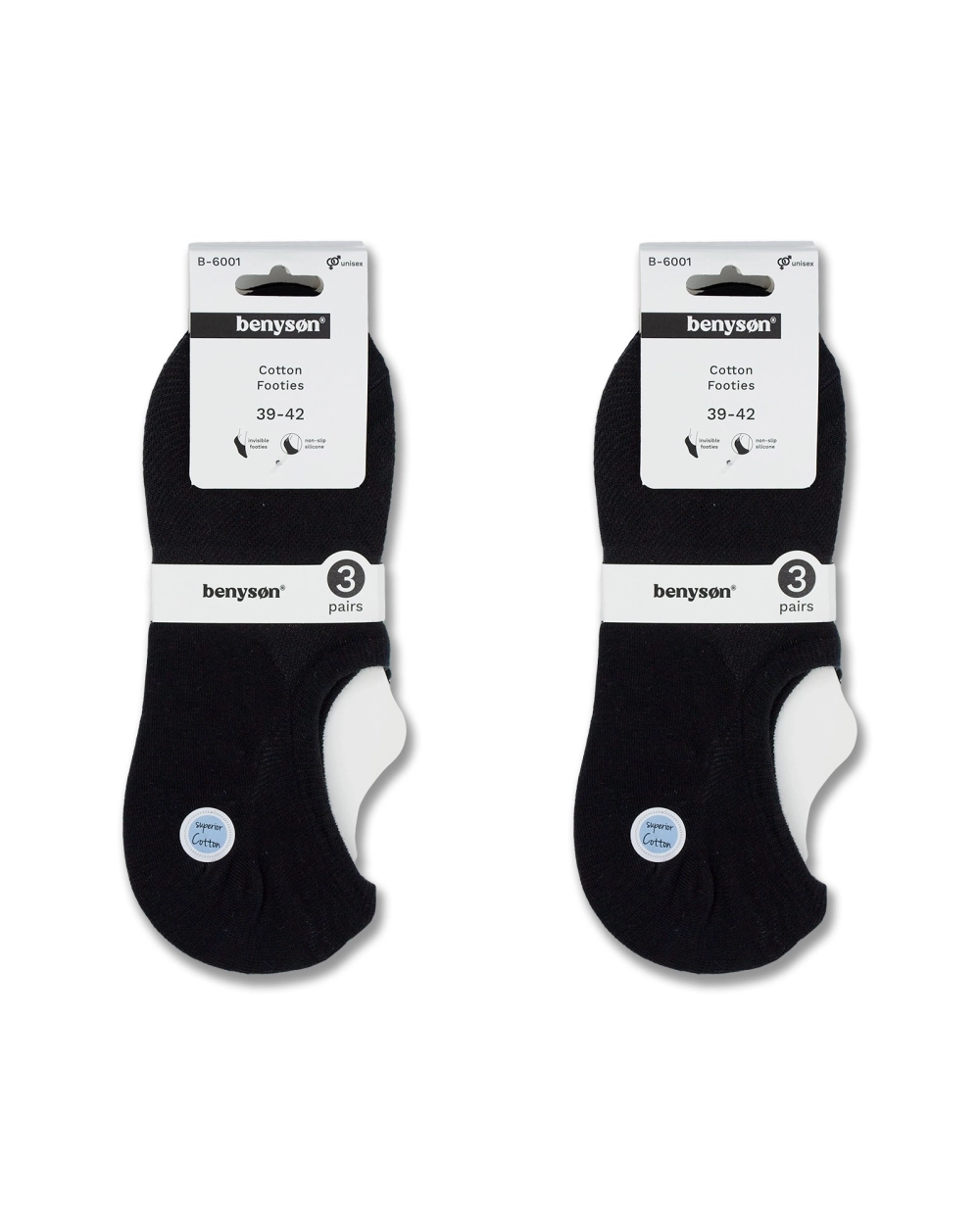 BENYSON®Set 3 perechi Șosete invizibile tip tălpici din bumbac premium, cu silicon la călcâi pentru fixare perfectă. Confort maxim, respirabilitate și design discret pentru orice tip de încălțăminte joasă.